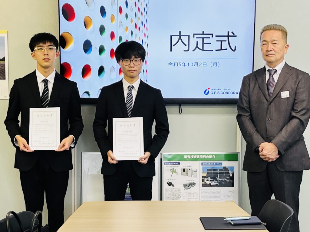 24年春入社予定の内定者3名のうち2名が出席し、内定式を執り行いました。